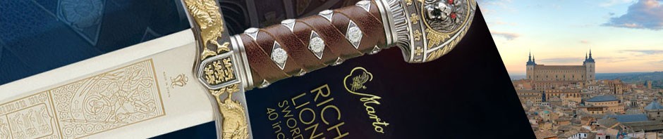 Marto presents Deluxe limited edition of a legendary swords from human history. These unique swords belonged to Alexander the Great, King Solomon, Charlemagne, Charles V, etc. Limited swords are decorted by 24K gold. Top class swords from Toledo.