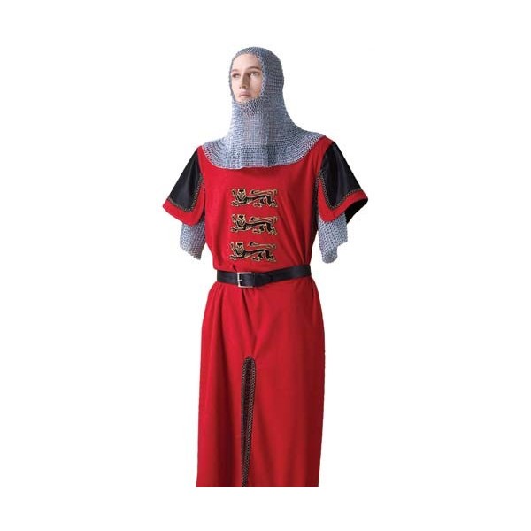 Richard The Lionheart Costume. Luxury red tunic of KIng Richard, famous crusader King of England. Coat of Arms of Richard: Three English lions.