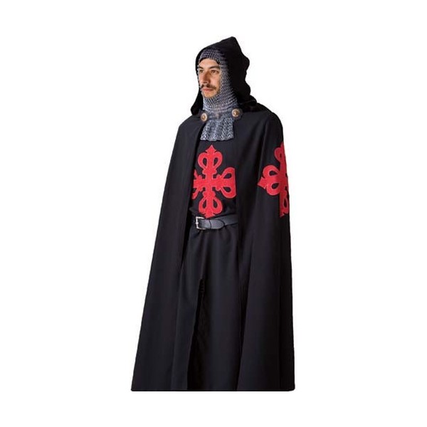 All cotton made clothing, composed of black colored cloak with a sewn red Calatrava cross "fleury". Typical dress of a knight of the order of Calatrava. One size. Cloak ONLY accessories not included