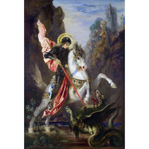 Legend of St. George and Dragon: St. George killed a dragon crocodile and saved a princess.