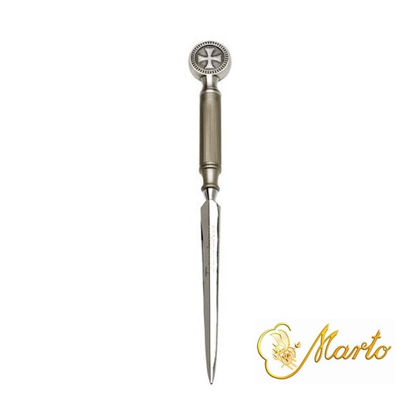 Templar Letter Opener-Silver. Letter opener with symbols of Knights Templar. Made by Marto Toledo Spain. Luxury Templar letter opener for collectors. Awesome gift or an award. Silver handle.