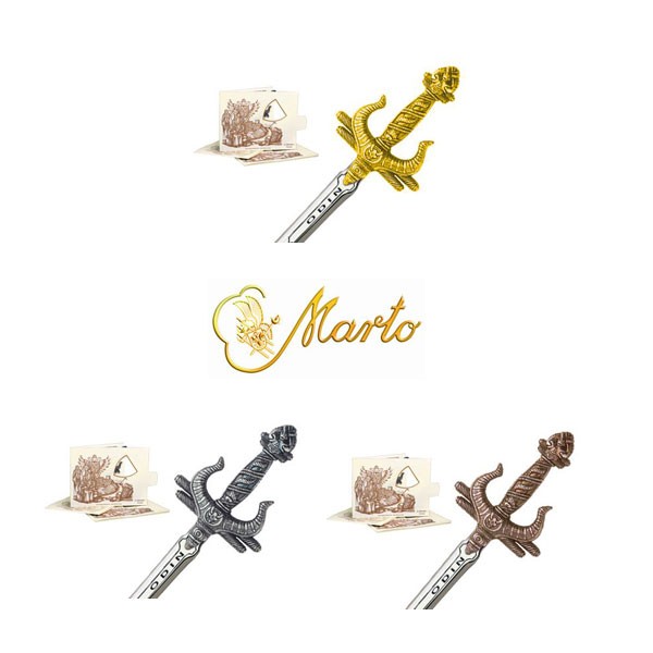 Odin Sword Miniature by Marto of Toledo. Sword of Odin, the king of viking Gods. Odin was patron of viking warriors, he was often portrayed with a sword. 6 inches, gold, silver and bronze finish.