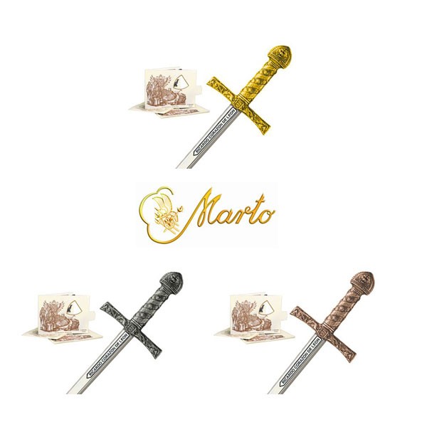 King Lionheart Sword Miniature. Sword of Richard I. Lionheart, king of England and prototype of a medieval knight. 6 inches, gold, silver and bronze finish.