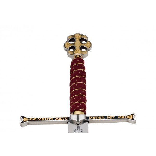 Deluxe sword of Catholic Kings by Marto of Toledo Spain is a LIMITED EDITION reproduction of the great sword kept in the Real Armeria in Madrid. Ceremonial sword of Isabella Castile and Ferdinand Aragon. Memento meio mater Dei mei.