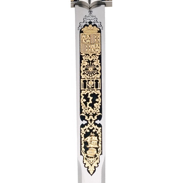The Catholic Kings Sword by Marto of Toledo Spain is one of the most spectacular swords in Spanish History. With this sword, the Catholic Monarchs Ferdinand and Isabella, knighted Christopher Columbus on his return from his first voyage to America. In the Throne Hall of the Royal Palace in Barcelona, Columbus was named "Admiral of the Ocean" and "Viceroy of the Indies". This ceremonial sword was used as the symbol of the royal power in all religious and political ceremonies, since the conquest of Grenada and the beginning of Spain as a nation.